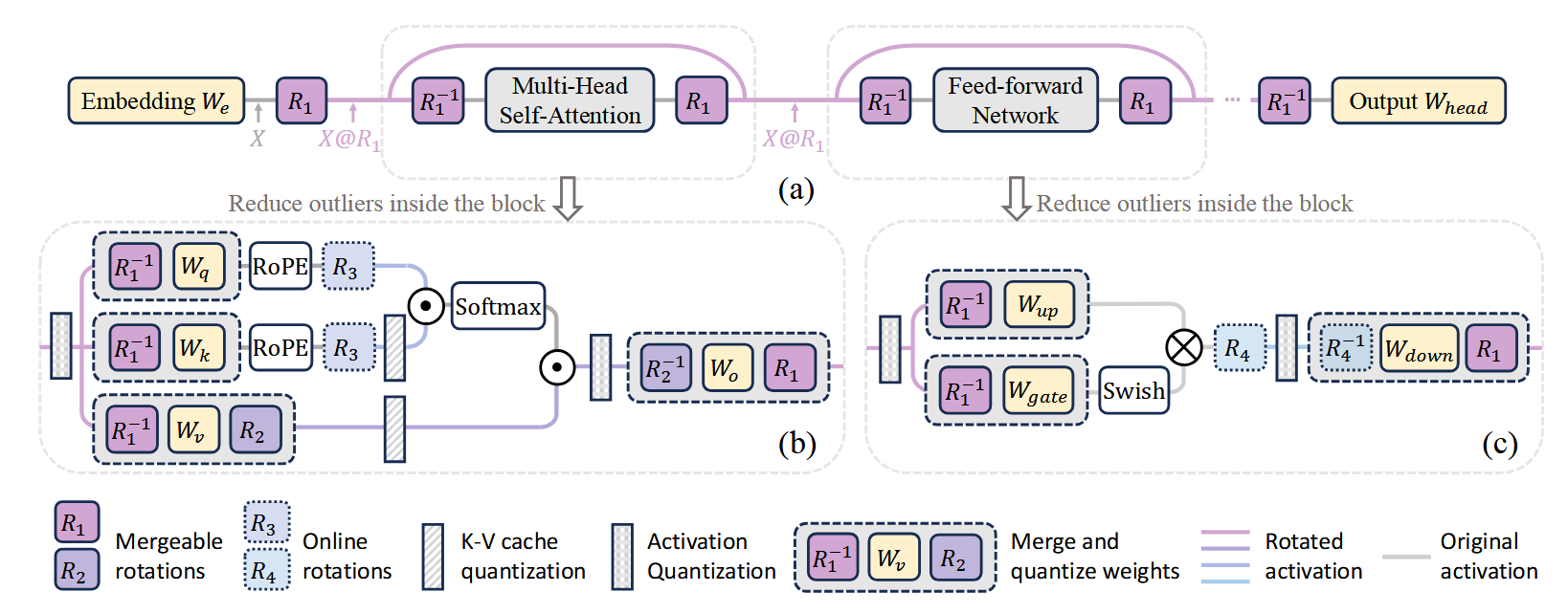 - After the rotation matrices are determined, use GPTQ to quantize the weights.